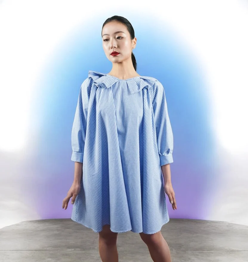 Playful yet refined—this timeless piece captures effortless charm with crisp blue gingham and a soft, quilted Peter Pan collar.